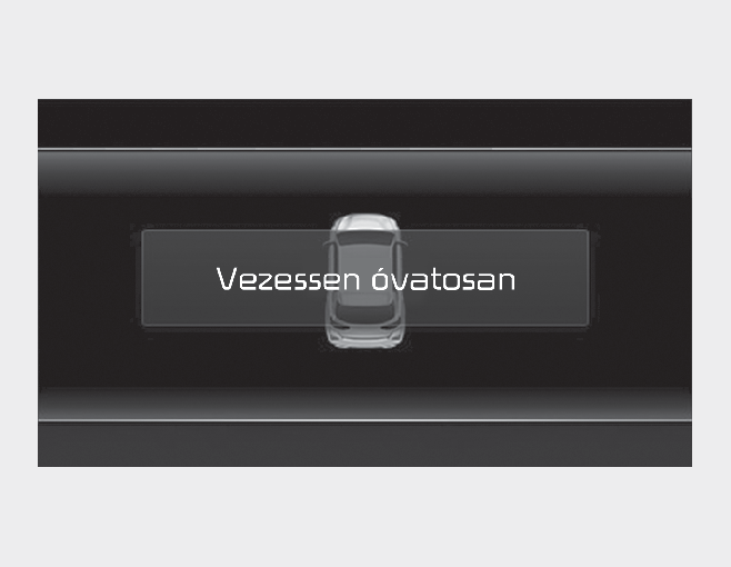 Ha a jármű vészfékezés miatt megállt, a műszerfalon megjelenik a 'Vezessen óvatosan' figyelmeztető üzenet.