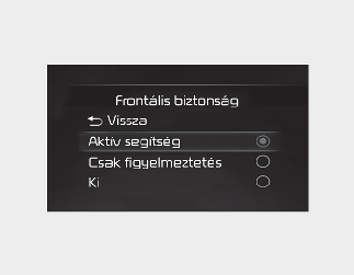 Az 'Off' (Ki) funkció kiválasztásakor a frontális ütközés-elkerülő segéd kikapcsol. A