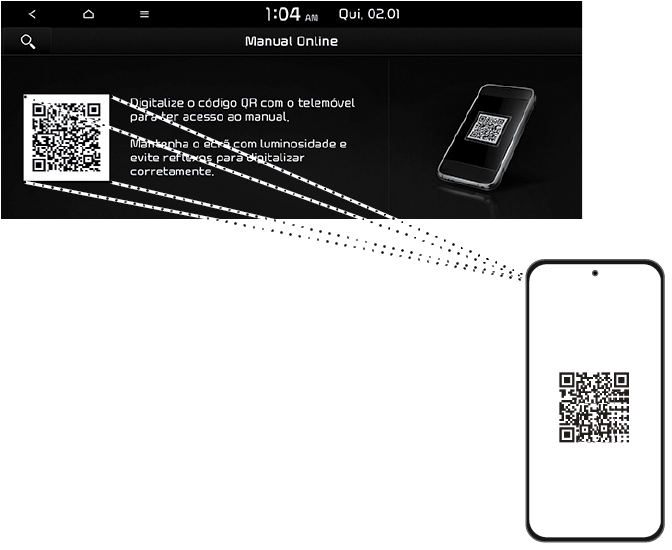 Ao digitalizar o código QR : Pressione [SETUP] > [Geral] > [Informações do sistema] > [Manual Online]. Digitalize o código QR, depois toque no URL do código para aceder a página da web.
