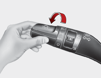 Para comandar as luzes, rode o botão até ao fim da alavanca para uma das seguintes posições: