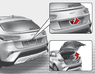 Com todas as portas trancadas, se o botão de desbloqueio da porta da bagageira na Smart Key for premido durante mais de 1 segundo, a porta da bagageira é destrancada. Assim que a porta da bagageira for aberta e depois fechada, a porta da bagageira é automaticamente trancada.