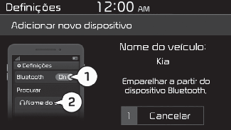 Se o ecrã de introdução de palavra-passe é exibido no ecrã do dispositivo Bluetooth, introduza a palavra-passe "0000" exibida no ecrã do sistema.