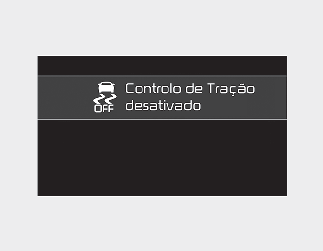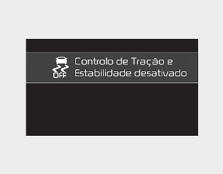 Pressione o botão "ESC OFF" (desligado) durante mais de 3 segundos. O indicador luminoso "ESC OFF" (desligado) irá ser apresentado e soará o aviso sonoro ESC OFF (desligado). Neste estado, as funções de controlo do motor e de controlo dos travões não funcionam. Isto significa que a função de controlo de estabilidade do veículo deixou de funcionar.
