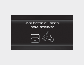 a mensagem "Use switch or pedal to accelerate" (Usar botão ou pedal para acelerar) é apresentada no painel de instrumentos.