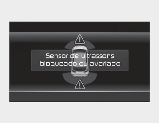 A mensagem de aviso "Ultrasonic sensor error or blockage" (Erro ou bloqueio do sensor ultrassónico) é apresentada no painel de instrumentos.