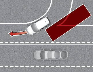 A Assistência à prevenção de colisão em ângulos mortos pode não funcionar devidamente quando se conduz numa estrada sinuosa. A função pode não detetar o veículo na faixa adjacente.