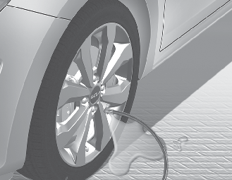 Lorsque le contact d’allumage ou le bouton ENGINE START/STOP du est en position marche : Allumer le compresseur et le laisser fonctionner pendant environ 3 minutes pour remplir le produit d’étanchéité. La pression de gonflage du pneu après le remplissage est sans importance.