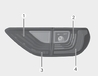 Si la lampe à LED (1) ne fonctionne pas, faites vérifier le véhicule par un atelier professionnel. Kia recommande de consulter un concessionnaire/réparateur Kia agréé. La lampe à LED ne peut pas être remplacée en un seul composant, car il s'agit d'une unité intégrée. Toute l'unité de lampe à LED doit alors être remplacée.
