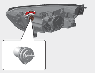 Enlevez la douille de l’ensemble du phare en tournant la douille dans le sens contraire des aiguilles d’une montre jusqu’à ce que les pattes sur la douille soient alignées avec les encoches sur l’ensemble du phare.
