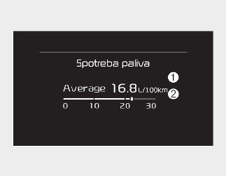 • Priemerná spotreba paliva sa počíta podľa celkovej dojazdovej vzdialenosti a spotreby paliva od posledného vynulovania priemernej spotreby paliva.