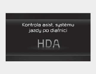 Ak asistent pri jazde po diaľnici nefunguje správne, zobrazí sa výstražné hlásenie „Skontrolujte systém asistenta pri jazde po diaľnici (HDA)“ a na prístrojovej doske sa rozsvieti výstražná kontrolka () .