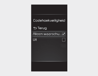 Als u voor ‘Off’ (uit) kiest, gaat de Blind-spot Collision Warning uit.