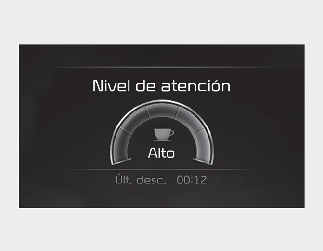 La función básica del aviso de atención del conductor es informar al conductor sobre el "Nivel de atención" y avisar al conductor para que "Considere tomar un descanso".