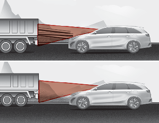 Inicio > Conducir su vehículo > Asistencia de prevención de colisión frontal (FCA) (solo cámara de visión frontal) > Avería y limitaciones de la asistencia de prevención de colisión frontal