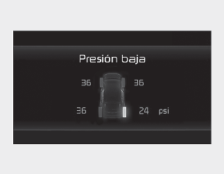 Inicio > Actuación en caso de emergencia > Sistema de control de presión de los neumáticos (TPMS) > Avisador de presión baja de los neumáticos