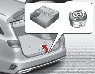 El equipo de reparación de neumáticos en carretera sirve para reparar temporalmente el neumático, por lo tanto, solicite la inspección del neumático lo antes posible en un taller profesional. Kia recomienda visitar un centro de servicio/distribuidor Kia autorizado.