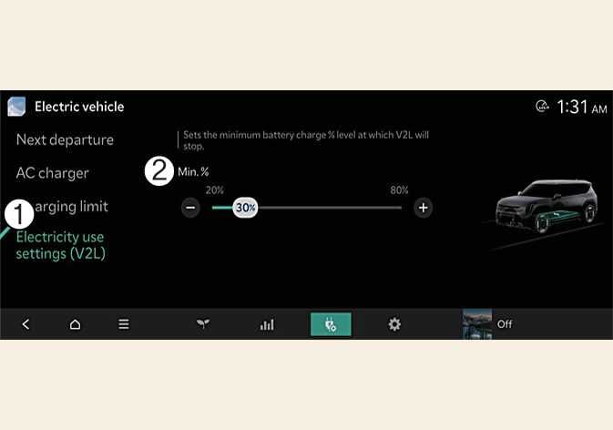 Pri uporabi sistema V2L preverite različne informacije o V2L v informacijsko-razvedrilnem sistemu.