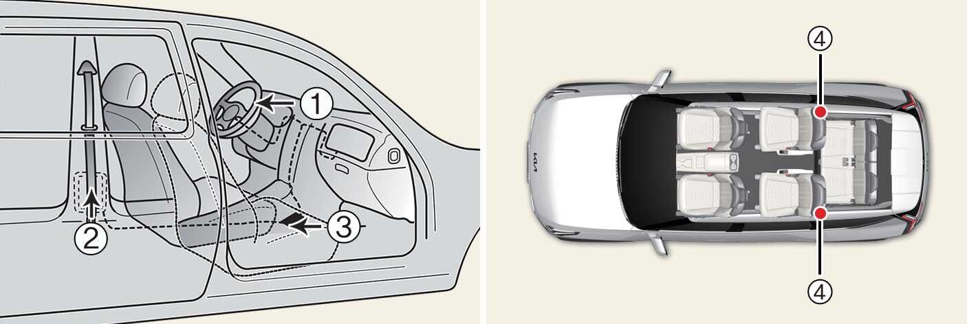 Če je vozilo opremljeno s stransko ali stropno zračno blazino, se prednapenjalnik ne bo aktiviral samo pri čelnih trčenjih, temveč tudi pri bočnih.