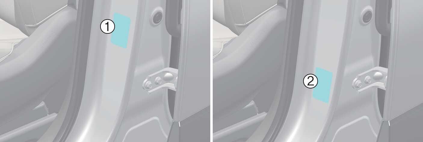 Oznaka certifikata vozila, ki je nameščena na sredinski podporni steber, kot je prikazano, vsebuje identifikacijsko številko vozila (VIN).