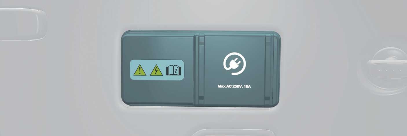 Pretvornik izmeničnega toka (V2L) z napetostjo 220 V/200 W električne moči za napajanje električnih dodatkov ali opreme vozila.