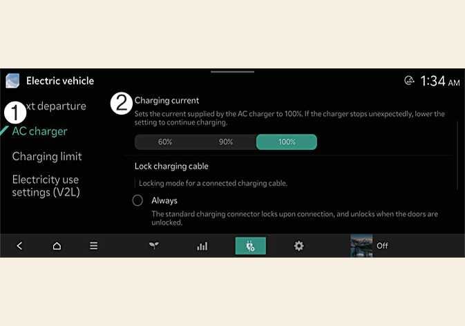 Pri polnilniku z izmeničnim tokom lahko nastavite polnilni tok. Izberite ustrezni polnilni tok.