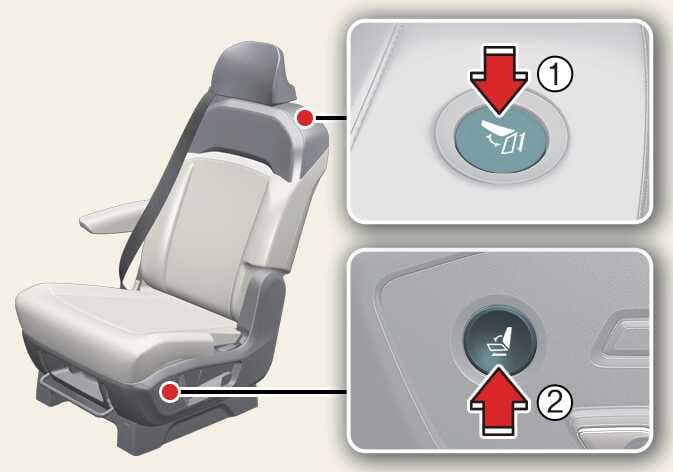 Ko pritisnete prehodno stikalo (1 ali 2), se naslon sedeža nagne naprej.