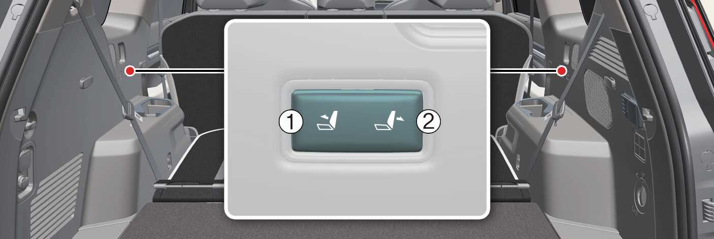 Pritisnite stikalo za nastavitev naklona naslona sedeža v tretji vrsti, ki se nahaja na levi in desni strani stranske obloge tretje vrste.