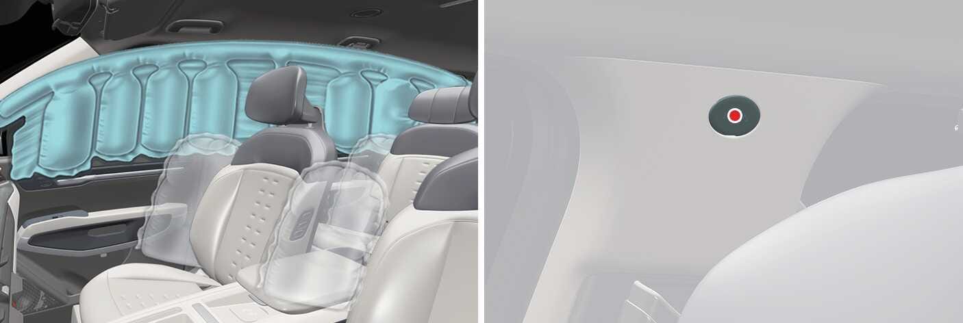 Stropne zračne blazine se nahajajo ob obeh straneh strehe nad sprednjimi in zadnjimi vrati.