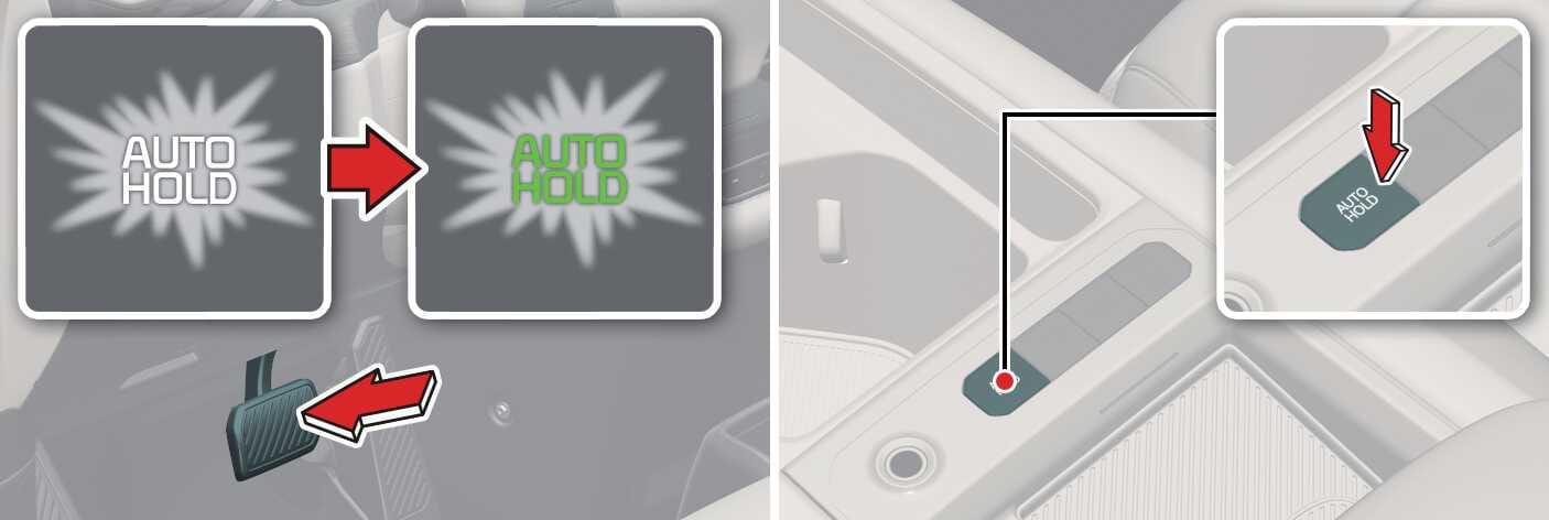 Za preklic delovanja sistema AUTO HOLD ponovno pritisnite gumb AUTO HOLD, medtem ko pritiskate zavorno stopalko.