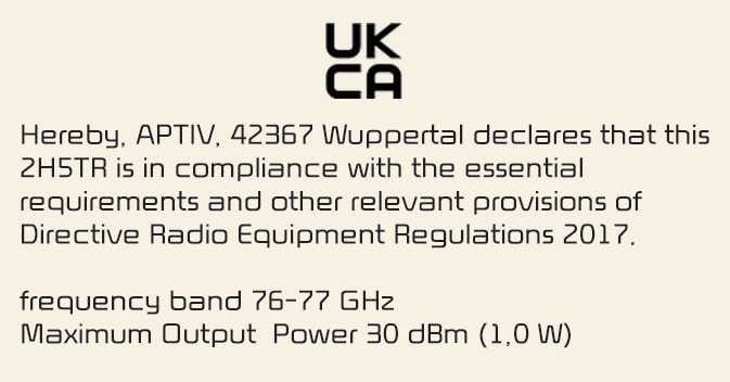 Radiofrekvenčne komponente (Sprednji/zadnji radarji za prepoznavanje vogalov) so skladne z: