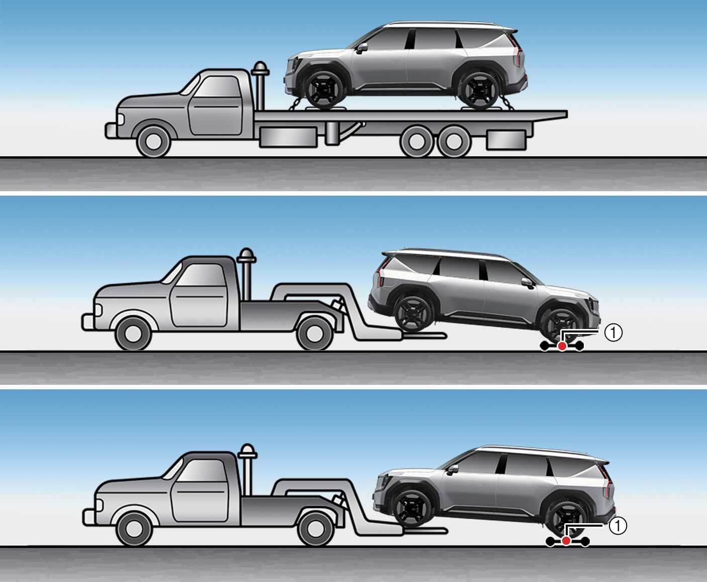Če je potrebna vleka vozila, uporabite dvižne naprave in transportne vozičke, pri čemer so vsa kolesa dvignjena nad tlemi.