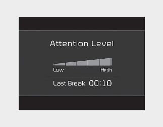 The driver's attention level is displayed on the scale of 1 to 5. The lower the number is, the more inattentive the driver is.