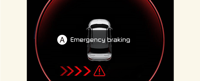 Nødbremsing vil bli assistert for å hjelpe med å forhindre kollisjon med kjøretøyet som nærmer seg fra venstre og høyre.