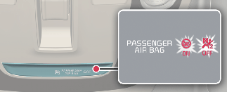 副駕駛座安全氣囊 ON/OFF 開關位於 OFF 位置時,副駕駛座安全氣囊被停用。