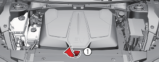 踩下前行李箱控制桿 (1) 的同時將前行李箱蓋向上提起。
