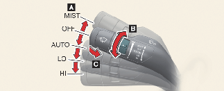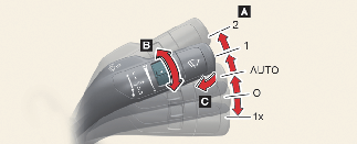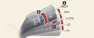 轉動速度控制開關 (B) 即可調整雨刷速度。
