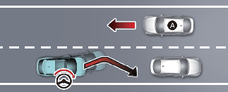 迎面變換車道功能可輔助駕駛者操縱方向盤,以避免變換車道時與來車碰撞。