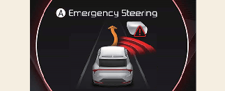 為了警告駕駛即將輔助緊急轉向,儀表板上會出現警告訊息,並會發出警告音且方向盤會振動。如與前方行人和騎士碰撞的風險高,而操作緊急煞車的車速在運作範圍之內,當車道有足夠空間避免碰撞,功能會輔助轉向。
