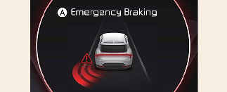 當車輛因緊急煞車而停車時,儀表板將出現「小心駕駛」的警告訊息。為了您的安全,駕駛應立即踩下煞車踏板並檢查周圍環境。
