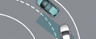 行駛於彎路時,盲區防撞輔助系統可能無法正常運作。盲點防撞輔助系統可偵測同一車道上的車輛。