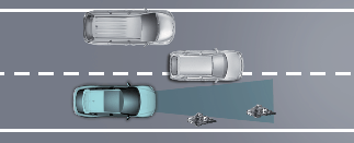 前方車輛變換車道時,智慧再生系統可能無法立即偵測該車輛,特別是車輛突然變換車道時。在此情況下,您必須維持安全煞車距離,如有需要,踩踏煞車踏板降低駕駛速度,以維持安全距離。