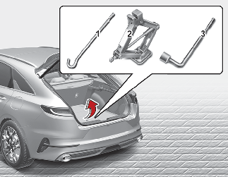 Página Iincial > O que fazer em caso de emergência > Pneu vazio durante a condução (com pneu sobresselente) > Macaco e ferramentas