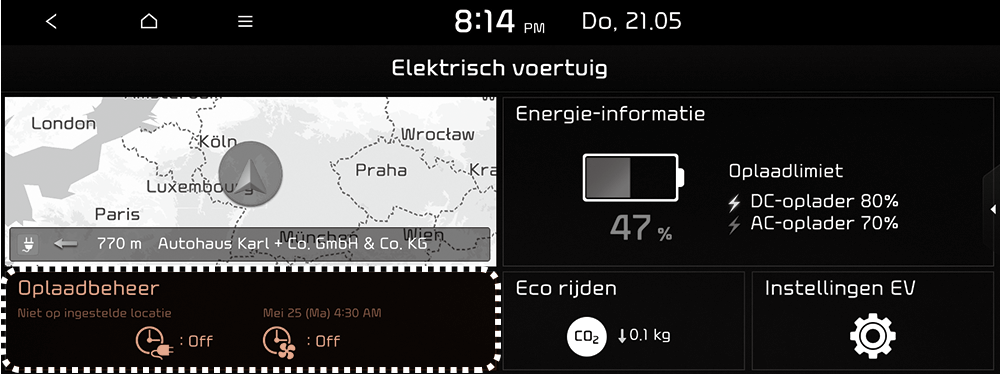 Selecteer 'EV → Charge management (laadbeheer)' op het scherm.
