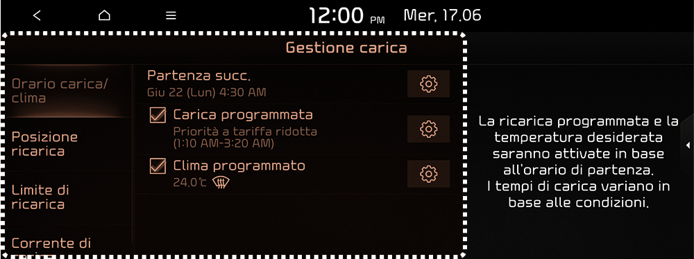 U kunt de datum en het tijdstip voor het laden van de batterij, de temperatuur van het verwarmings- en ventilatiesysteem, locatiegebonden laadopties en diverse andere functies instellen.