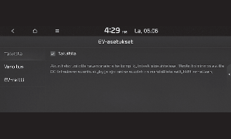 Valitse näytöllä 'EV → EV Settings (sähköautoasetukset)'.