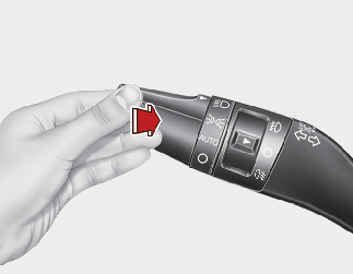 Kytke kaukovalot päälle painamalla vipua itsestäsi poispäin. Vipu palaa alkuperäiseen asentoonsa.