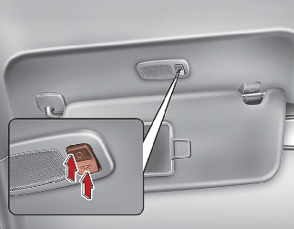 Pidä kytkin aina pois (off) -asennossa, kun meikkipeiliä ei käytetä. Jos häikäisysuoja on suljettu ilman, että valo on sammuneena, se voi purkaa akun tai vaurioittaa häikäisysuojaa.