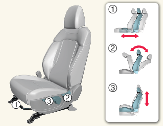 يمكن ضبط المقعد باستخدام أذرع التحكم الموجودة خارج وسادة المقعد.
