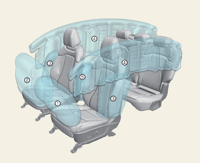 لتجنب التعرض لإصابات جسدية خطيرة أو الوفاة بسبب انتفاخ الوسائد الهوائية في حالة الاصطدام، يتعين على السائق الجلوس بعيدًا عن وسادة هواء عجلة القيادة قدر الإمكان. ويتعيّن على الراكب الأمامي الرجوع بمقعده إلى الوراء قدر الإمكان والجلوس على مقعده.