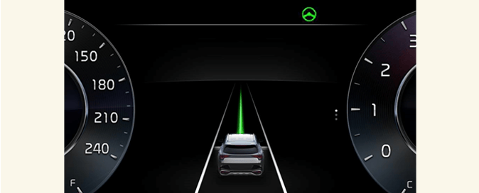 نظام المساعدة على الالتزام بالحارة المرورية على مساعدة السيارة على التمركز في الحارة المرورية عن طريق مساعدة عجلة القيادة.